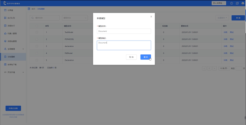 进入云扩文档理解服务系统,在这里我们可以管理并且自定义配置各类模板。