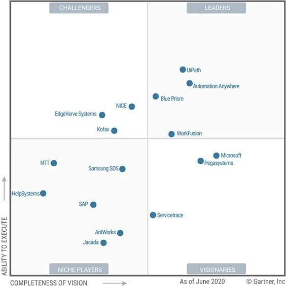 ▲ Magic Quadrant for Robotic Process Automation,2020