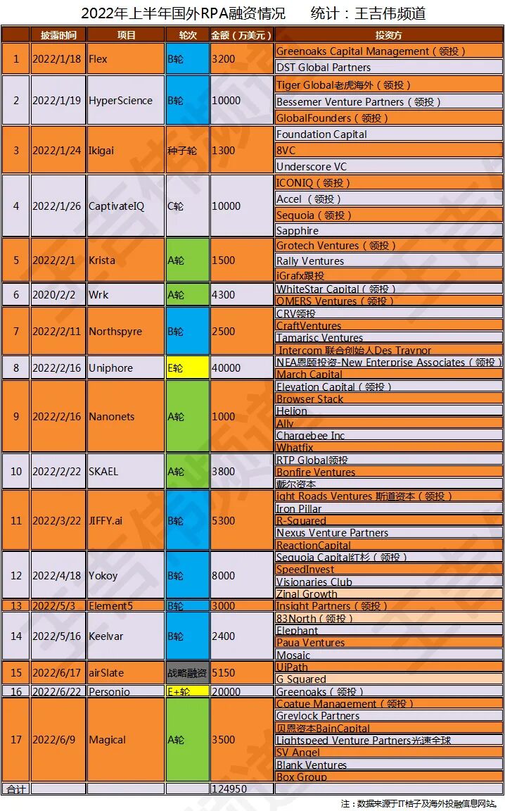 未经允许不得转载:RPA中国 | RPA全球生态 | 数字化劳动力 | RPA新闻 | 推动中国RPA生态发展 | 流 > 2022上半年全球RPA融资大盘点:A+B轮占六成,融资总额104亿元