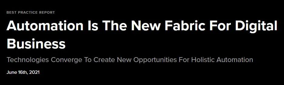 这种方法论,在Gartner叫作超自动化,在Forrester则称作自动化架构(Automation fabric)。