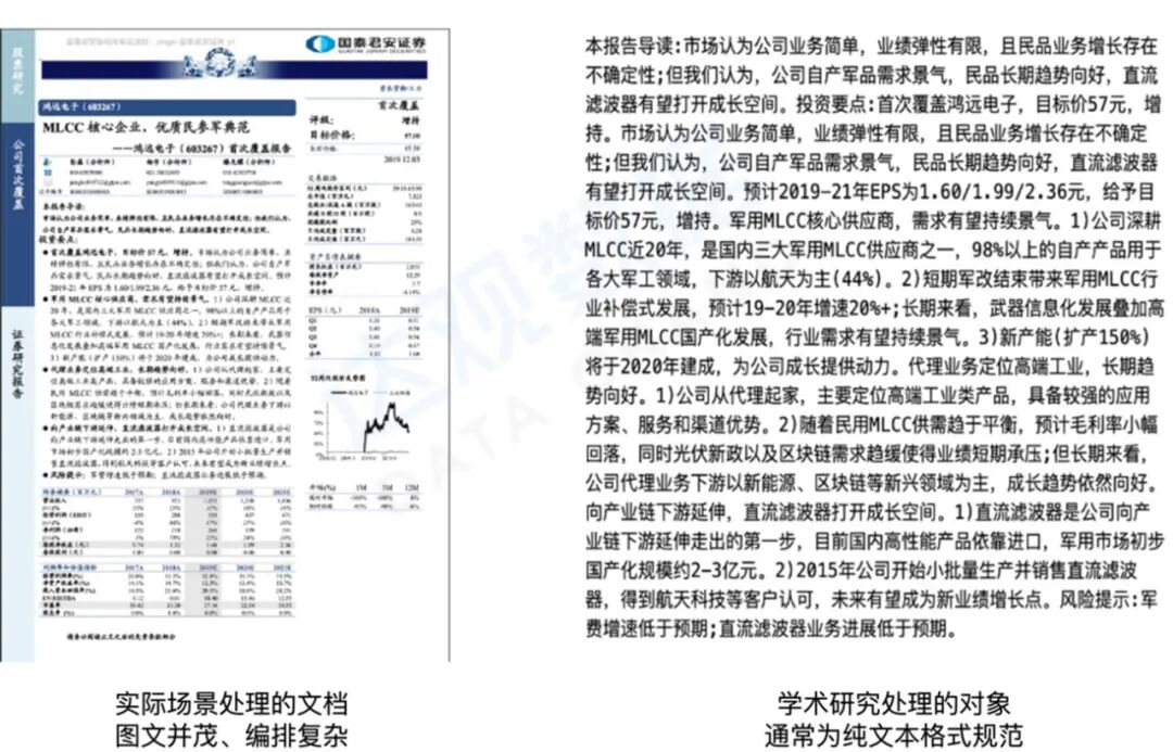 学术算法常常面对结构简单规范的文字形式,与工业真实场景存在鸿沟;