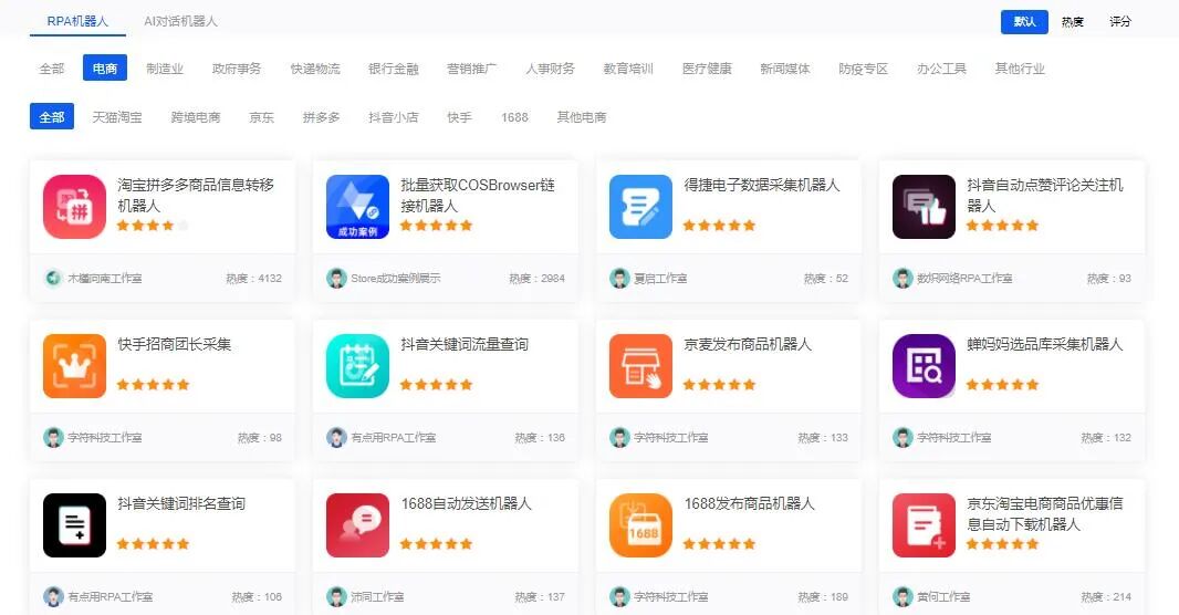 现在,RPA厂商们已经面向电商领域上线发布了各种场景的解决方案,所开发的面向多种场景的RPA机器人正在逐步覆盖更多业务流程,以帮助客户自动化完成电商运营各项环节中重复、繁琐、占用人力多且易出错的工作事项。