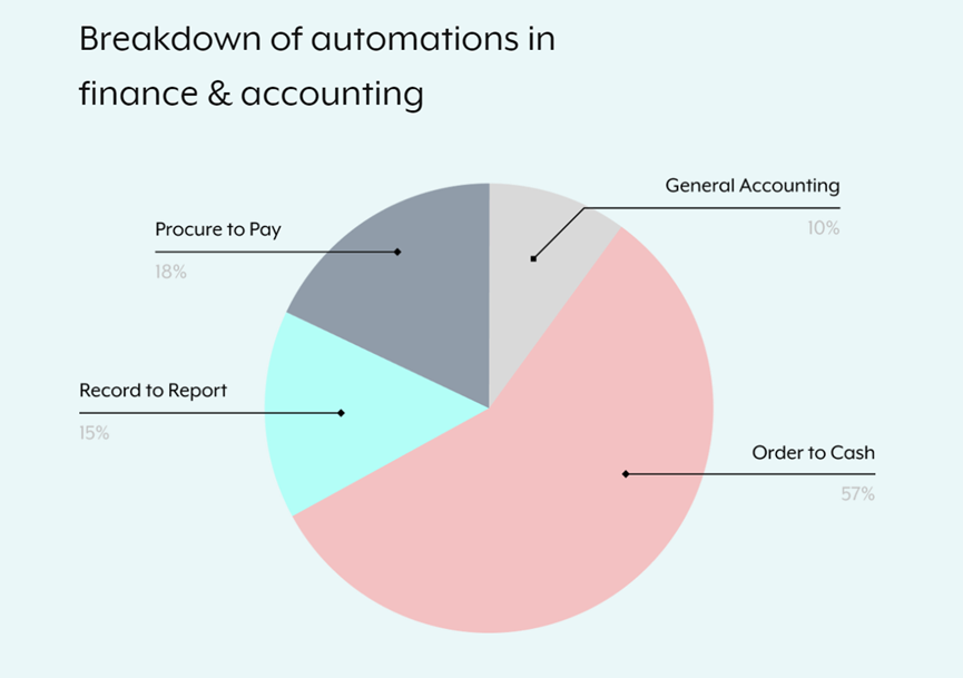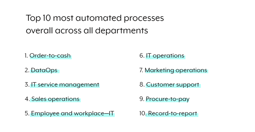 财务是应用自动化最高的部门。从订单到收款是财务最重要的自动化流程之一。记录到报告的自动化应用也显着增长了290%。