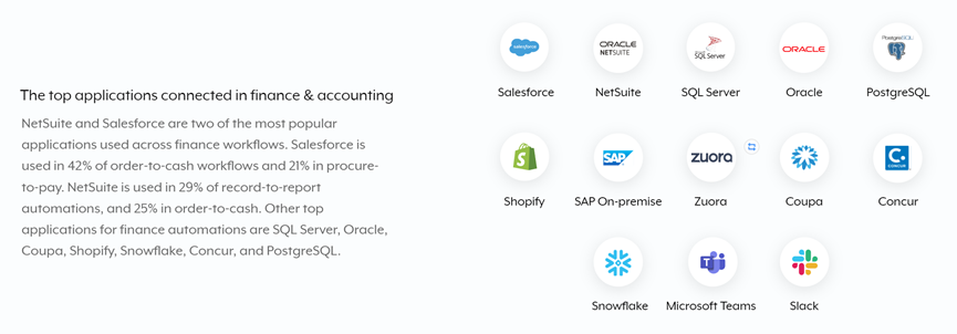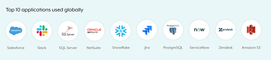 Salesforce、Slack、SQL Server、NetSuite、Snowflake、Jira、PostgreSQL、ServiceNow、Zendesk和Amazon S3,是全球自动化流程中,使用频率最高的10款应用。