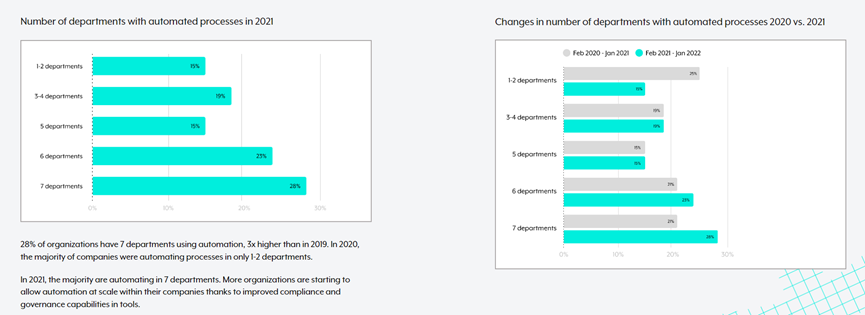 自2019年以来,拥有7个部门实现自动化的组织数量几乎增加了两倍。