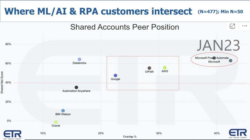 RPA(机器人流程自动化)与ChatGPT拥有很多相似的功能属性,“自动化”是最大共同点。根据ETR最新调查数据显示,截止2023年第一季度,受ChatGPT在全球范围的利好因素影响,RPA的需求显著上升。