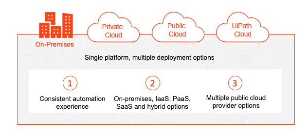 无论是私有云还是公有云,亦或是其他业务环境组合,在UiPath平台的帮助下,都能始终保持与自身信息技术以及云战略需求的同步。