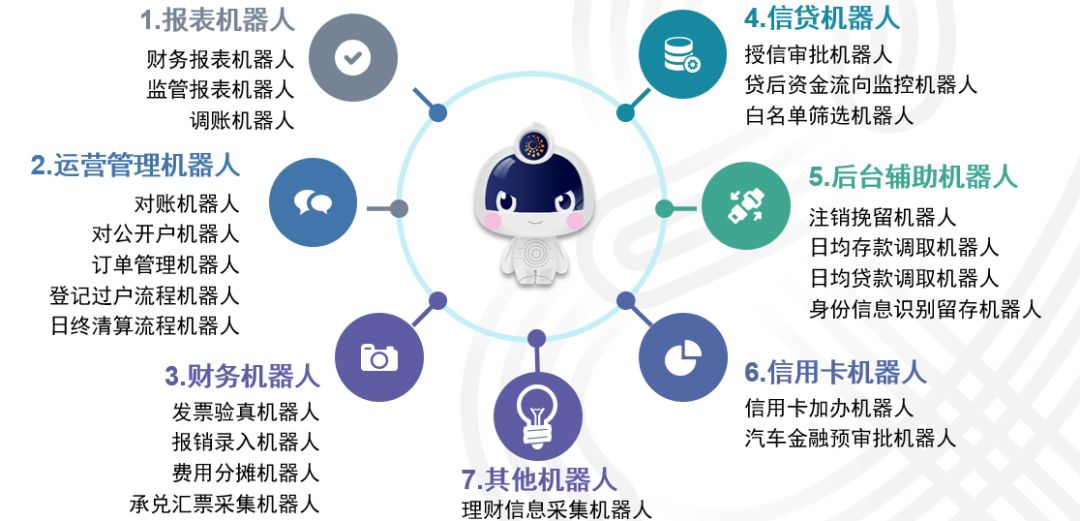 一直以来,兴业数金RPA团队秉承着成为金融行业RPA领军者的理念,打造出“金田螺”流程机器人系列产品,已在诸多金融业务场景落地(如下图所示):
