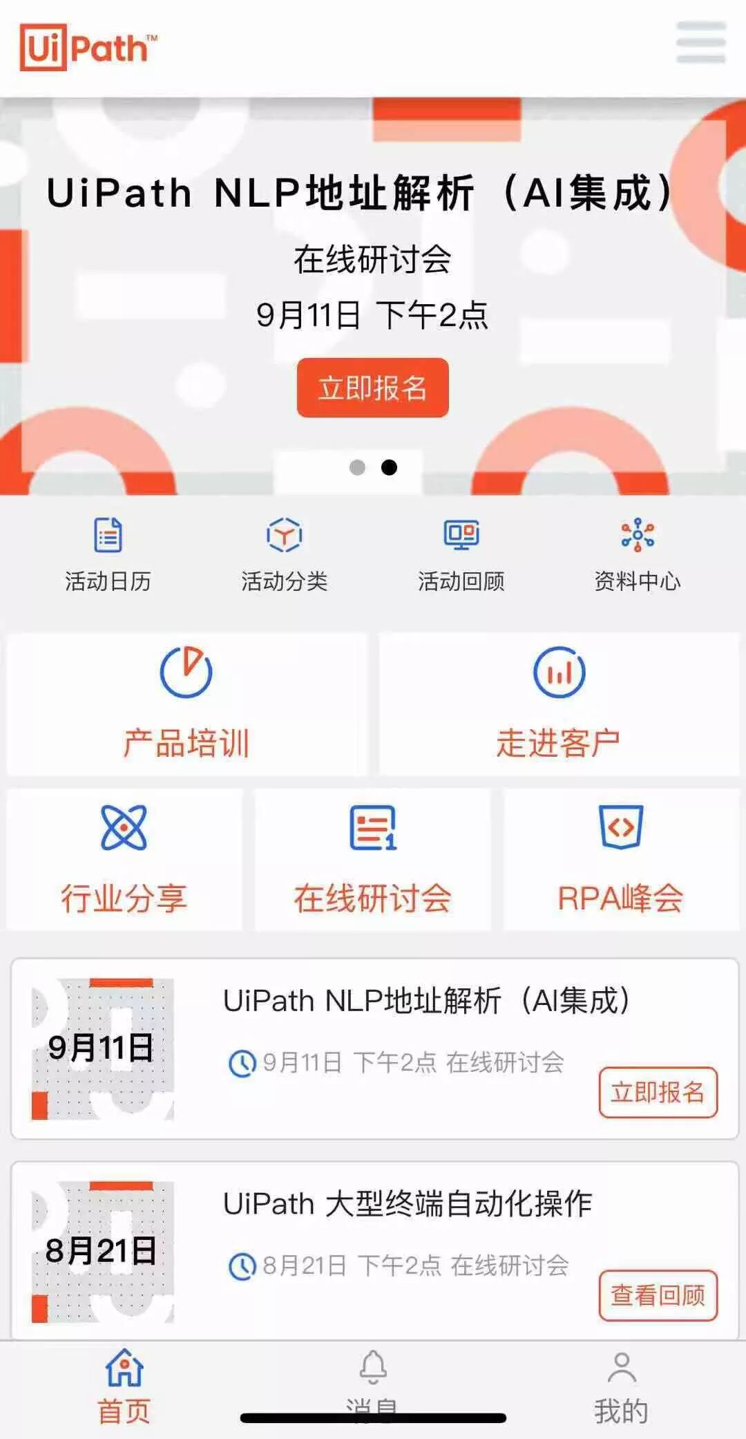 UiPath小程序集在线会、培训、行业资讯等内容于一体,是 RPA行业领域的专属活动平台 。 话不多说,先来看下它的主要“亮点”: