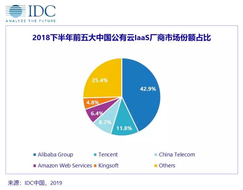 2019年11月7日IDC 发布的《中国公有云服务市场(2019上半年)跟踪》报告显示,2019上半年中国公有云服务整体市场规模(IaaS/PaaS/SaaS)达到54.2亿美元,其中IaaS市场增速稳健,同比增长72.2%,PaaS市场增速有所回落,同比增长92.6%。