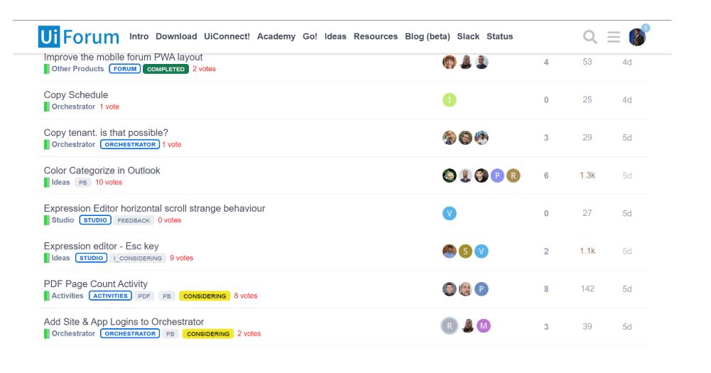 同时在新发布的论坛反馈区域,您可以反馈对UiPath Studio、Orchestrator和Robots等产品的见解。