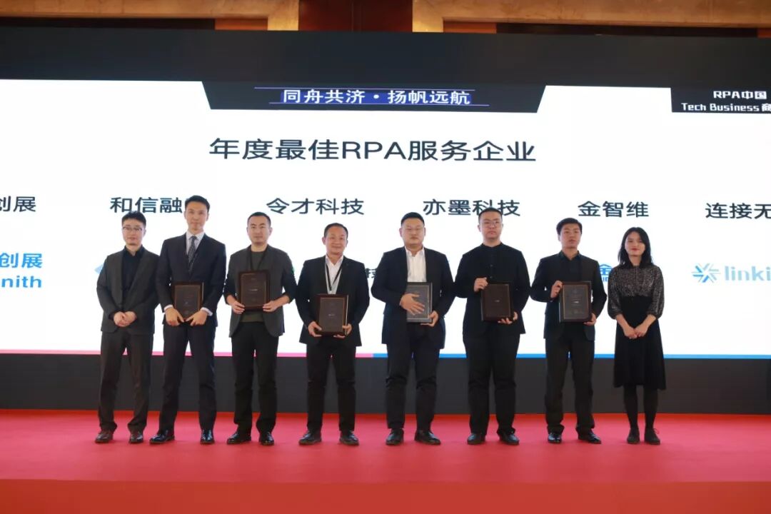 年度最佳RPA服务企业奖:中投创展、和信融慧、令才科技、亦墨科技、金智维、连接无限