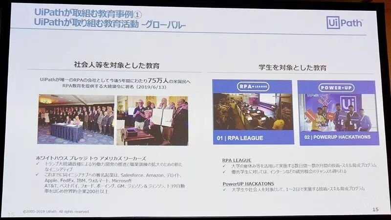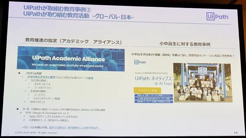 而在日本,UiPath已与中学、高中、大学签订了“RPA教育计划”,使孩子们可以从小就接受系统的RPA教育,才不会被未来的“自动化时代”所抛弃。