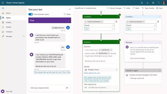 同样是一款无代码/低代码应用程序,Power Virtual Agent 允许任何人创建和部署由 AI 驱动的智能虚拟代理。