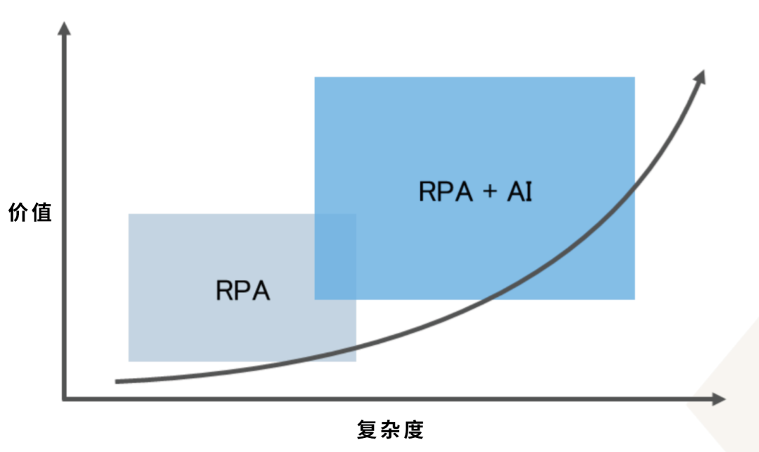 这是一张RPA从业者烂熟于胸的示意图,这张图的经典之处在于,它非常明晰地揭示了RPA和AI之间的关系: