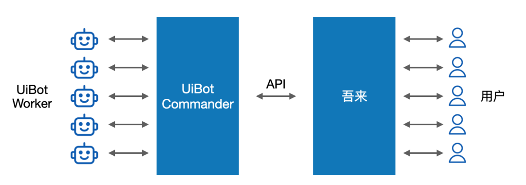 “来也吾来”和“UiBot Commander”通过API进行对接,吾来将用户的语义信息以参数的方式传递给Commander。 相反的,Commander也可以将RPA机器人执行的结果反馈给“吾来”。
