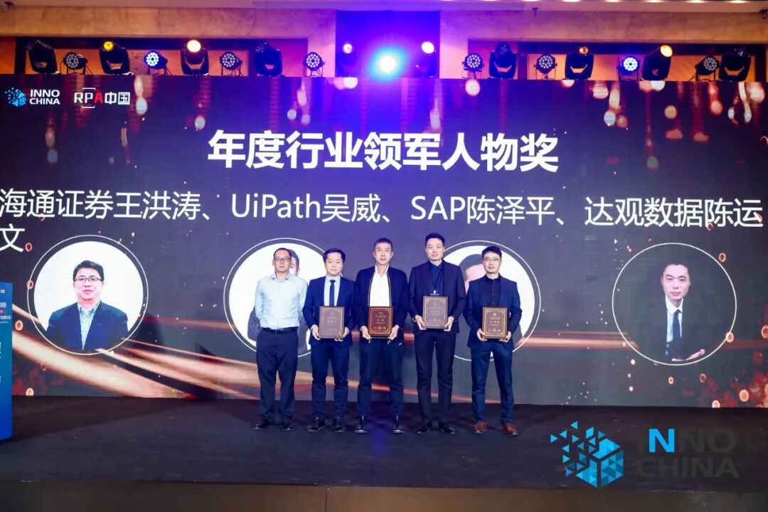 获奖者: 海通证券王洪涛、SAP陈泽平、UiPath吴威、达观数据陈运文