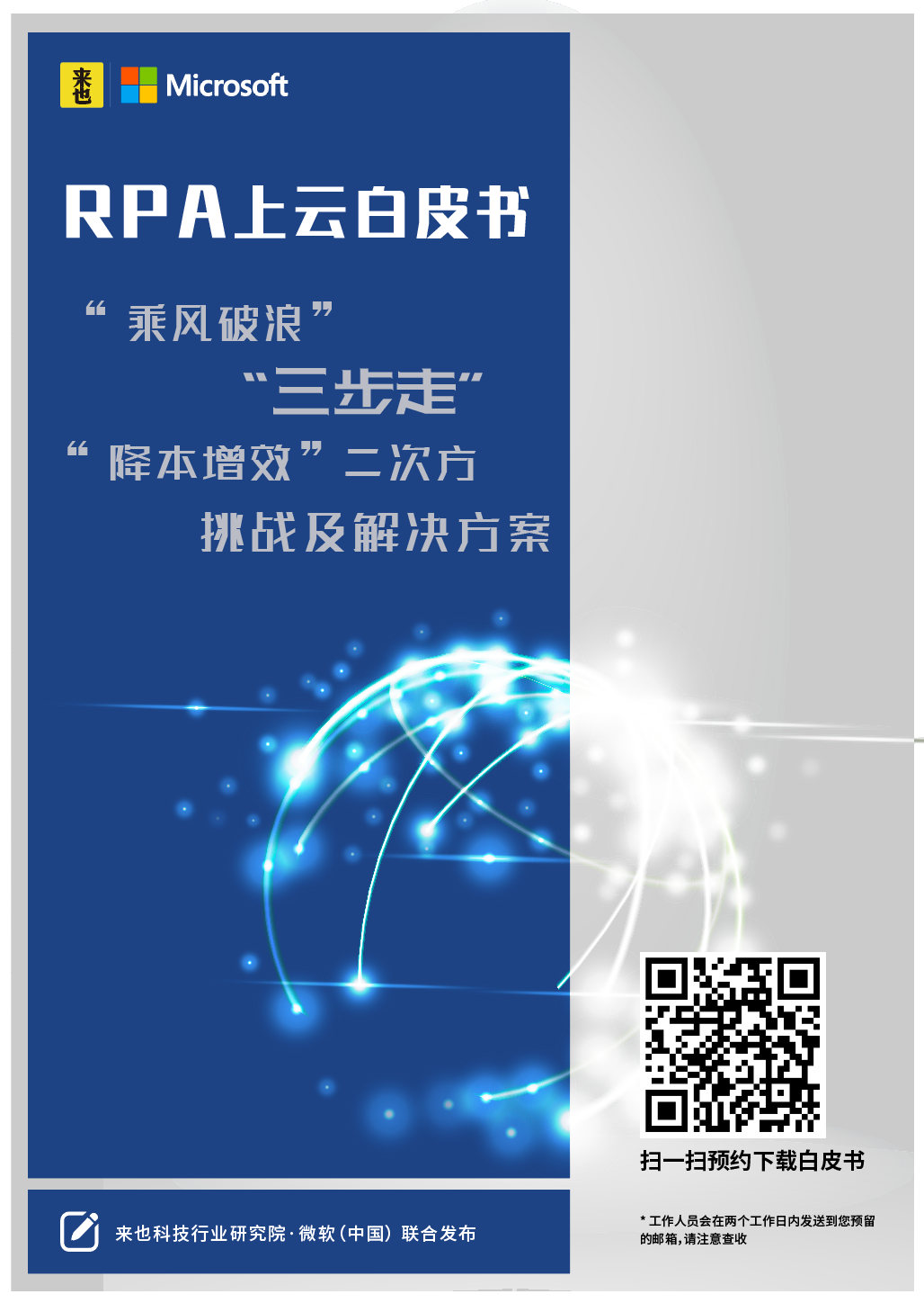 未经允许不得转载:RPA中国 | RPA全球生态 | 数字化劳动力 | RPA新闻 | 推动中国RPA生态发展 | 流 > 来也科技联合微软(中国),发布《 RPA 上云白皮书》