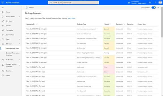 实时监控自动化流程: 为了保证自动化业务流程的数据安全,为用户提供了一个自动化流程查看器,可以实时监控所有自动化业务流程。同时通过可视化监视器,用户还可以对正在执行的自动化业务流程进行过滤和排序,以执行重要的业务流程。