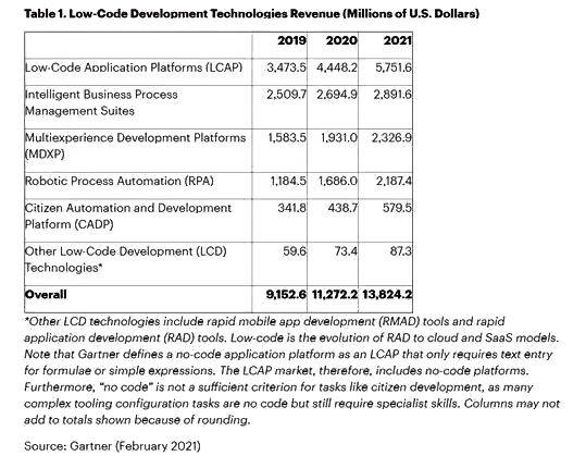 未经允许不得转载:RPA中国 | RPA全球生态 | 数字化劳动力 | RPA新闻 | 推动中国RPA生态发展 | 流 > Gartner:2021年全球低代码市场138亿美元,同比增长22.6%