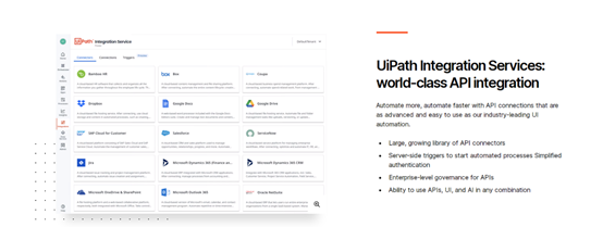 UiPath新增基于UI、API的混合自动化解决方案,允许在同一集成设计环境中提供两种自动化功能。