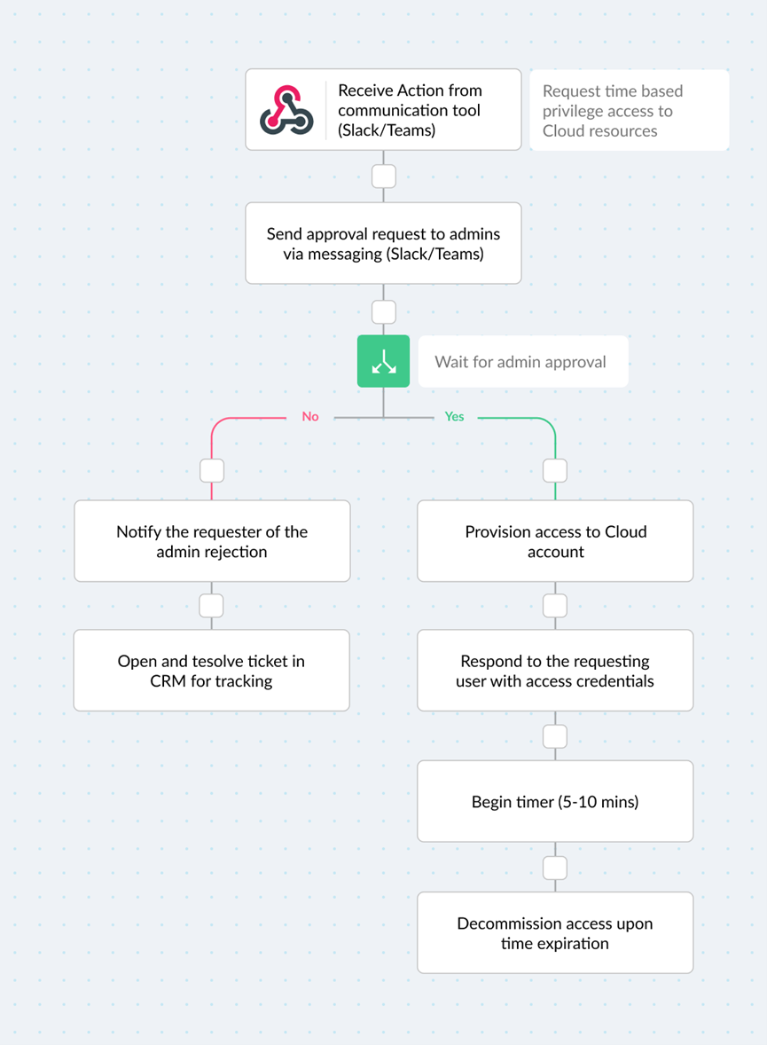 身份生命周期管理:通过安全机器人可自动管理用户身份、账户、权限以及访问策略等功能。例如,为敏感操作授予临时访问权限,在用户操作完成后自动化删除所有权限,有效帮助用户减少了手动管理时间并提升工作效率和安全指数。