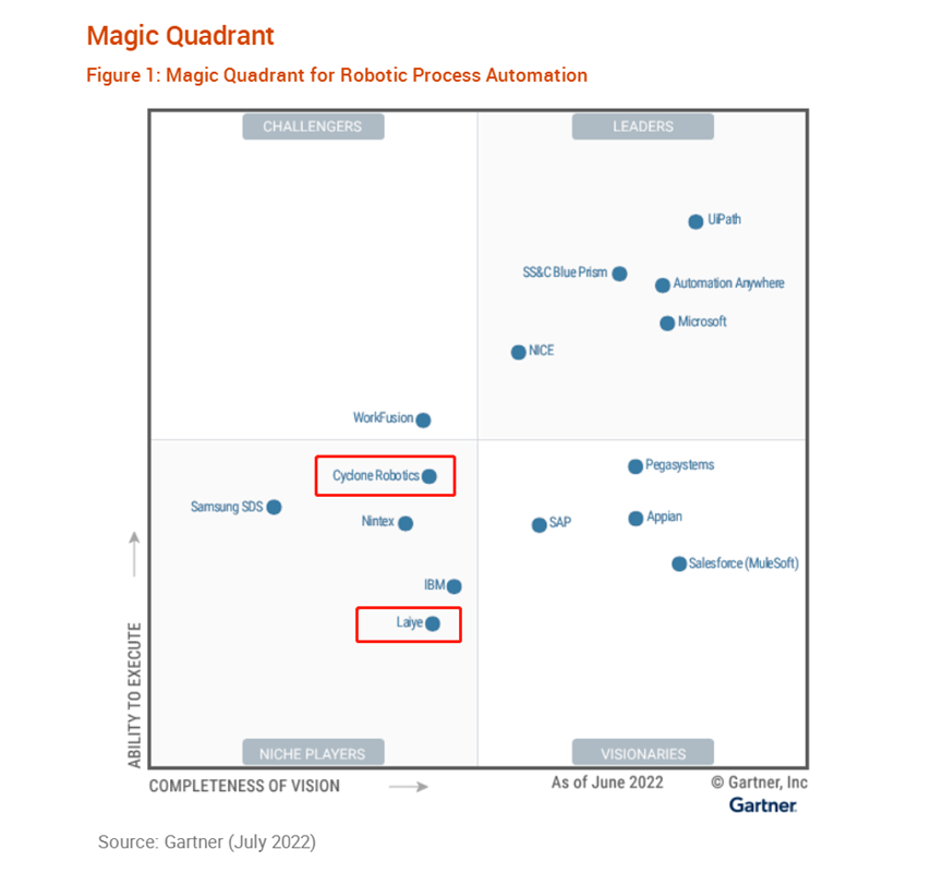 未经允许不得转载:RPA中国 | RPA全球生态 | 数字化劳动力 | RPA新闻 | 推动中国RPA生态发展 | 流 > Gartner发布2022年全球RPA魔力象限:两家中国厂商上榜