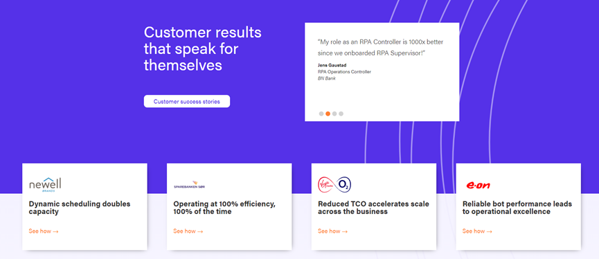 Supervisor走了一条与其他RPA厂商截然不同的商业路线,主要提供RPA智能管理服务。Supervisor可帮助客户管理现有RPA机器人,例如,UiPath、AA、微软Power Automate等,用于改善机器人故障率、效率低、项目交付慢等。