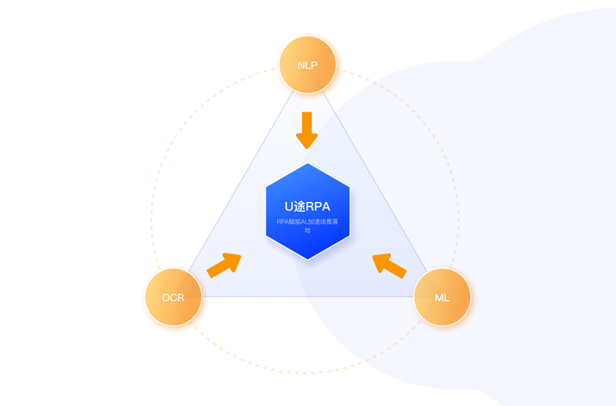 AI赋能:通过将NLP、OCR、ML等人工智能技术内置在RPA中,赋予RPA机器人“看”、“听”、“说”拟人化能力,以扩大RPA的能力边界,满足用户对非结构化数据业务自动化的需求。这也是东上数字的亮点技术之一。
