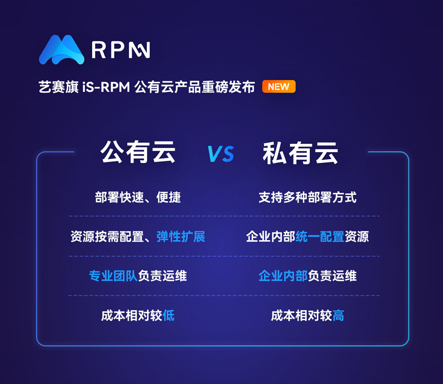 近日,艺赛旗正式对外发布iS-RPM公有云版本,面向企业及开发者提供高性能、高可用、高安全的公有云版本服务。iS-RPM公有云版本是基于艺赛旗在行为采集、行为分析、行为发现、行为替代等超自动化核心技术领域多年积累上研发的云服务产品。iS-RPM公有云版本的发布,是艺赛旗iS-RPM产品的一次升级,也标志着艺赛旗云服务的生态版图进一步拓展。