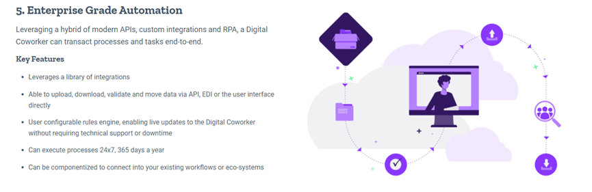 产品方面,Roots提倡通过“RPA+AI”帮助企业打造数字员工的领先理念。与传统人工相比,数字化员工具备处理数据准确率高,7*24小时无间断工作,不会频繁请假/生病,不会发脾气等巨大优势。同时RPA在各种AI加持下,具备了“看”、“听”、“说”等拟人化能力。