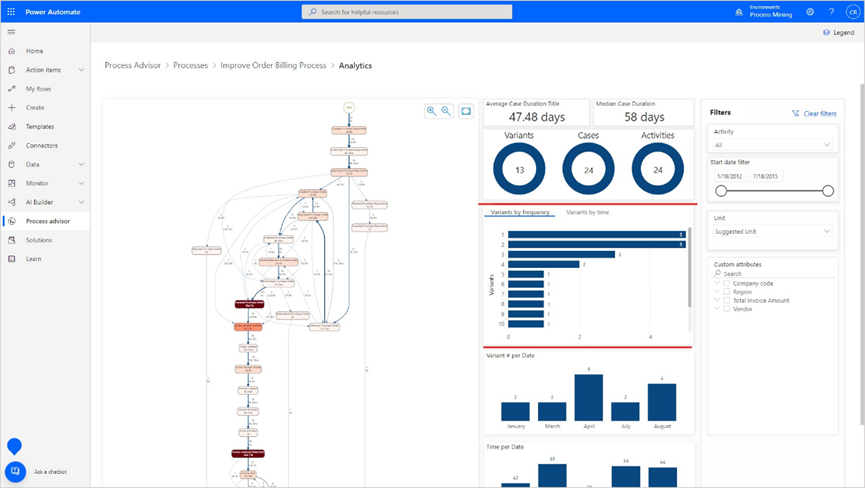 为了降低流程挖掘的使用门槛,微软的Power Automate提供了开箱即用的模板包括:P2P、O2C和应付账款等业务场景,以帮助用户快速了解流程优化机会和自动化机会。