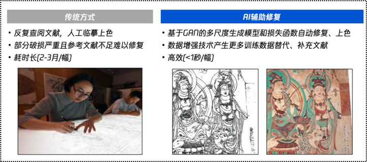 图:腾讯利用AIGC技术手段,助力敦煌古壁画修复