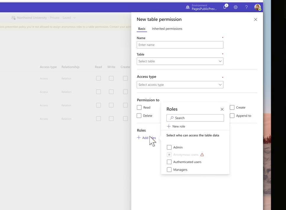 本次更新后,Power Pages中加入了数据丢失防护(DLP)功能。该功能使得管理员通过数据策略,强制限制数据对匿名用户的暴露,以保证数据的安全性。