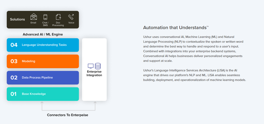 产品方面,Ushur的智能自动化平台主要由对话式智能自动化、浏览器自动化、智能邮件自动化和智能文档自动化组成。