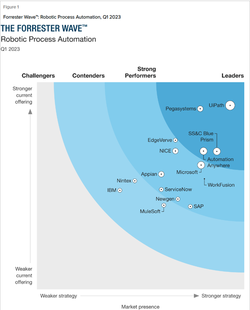 其中,UiPath、Pegasystems、SS&C Blue Prism、Automation Anywhere被评为行业领导者;