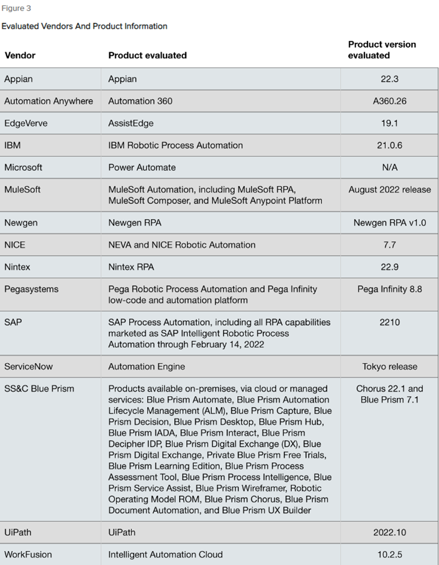 未经允许不得转载:RPA中国 | RPA全球生态 | 数字化劳动力 | RPA新闻 | 推动中国RPA生态发展 | 流 > Forrester发布2023年Q1 RPA报告:15家厂商上榜