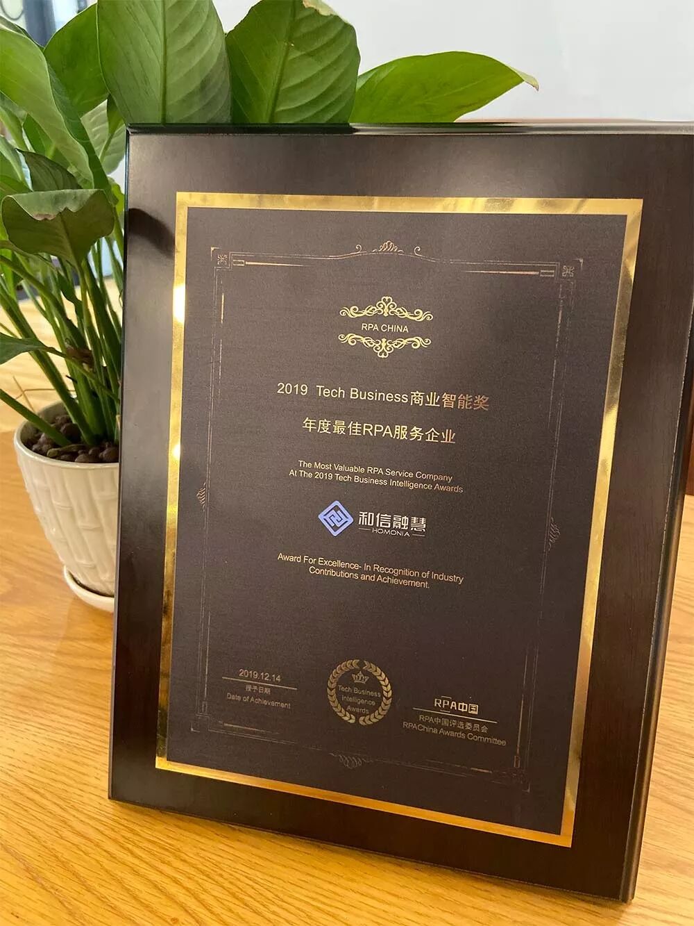 和信融慧RPA产品的合规与安全、灵活扩展、企业级前瞻架构、总体使用成本低等特征,受到了客户及合作伙伴的广泛好评。同时通过对其产品根据销售业绩、产品特点、市场品牌、行业应用、企业参与度、科技创新、商业模式等多个维度的详细评估,综合评分出色,和信融慧当之无愧的斩获了“RPA中国2019年度TechBusiness商业智能奖”的“年度最佳RPA服务企业大奖”。
