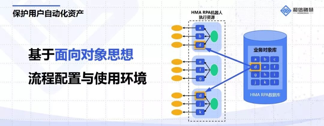 在这个过程中,如何保护企业现有自动化配置资产能够被最大化的使用影响到用户整个对于RPA的投入成本?基于此,和信融慧将“面向对象思想”引入到了流程的配置和使用过程中。