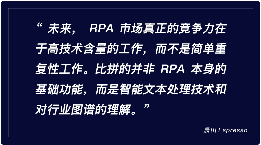 未经允许不得转载:RPA中国 | RPA全球生态 | 数字化劳动力 | RPA新闻 | 推动中国RPA生态发展 | 流 > 风口下的RPA,更高阶的智能化才是未来决胜点 | 晨山Espresso