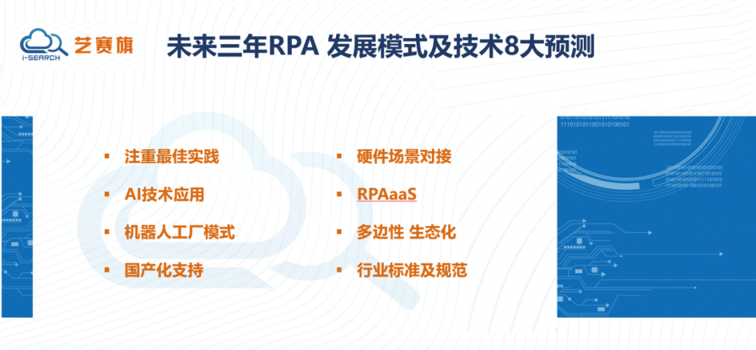基于以上内容我们提出了未来三年RPA的发展模式及技术方面的8大预测,主要包括以下几点: