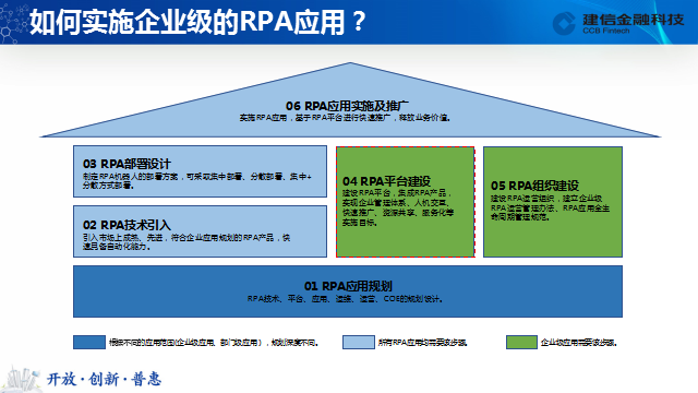 下面我想分享的第二个问题是如何实施企业级RPA应用,主要包括六个步骤。