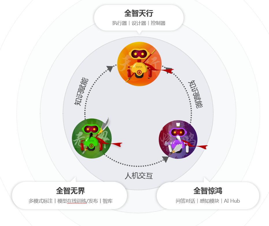 而全智惊鸿为使 “天行” 实现人机协同工作,惊鸿具有感知模块,可以自动发现用户意图,主动弹出并提示用户可以交给机器人的工作和相关业务知识。产品于2020年1月推出已在政法协同、数据查询两个场景落地,多个法院信息中心表达采购意向。内部也叫“集线器”,提供了AI和用户的友好交互界面。