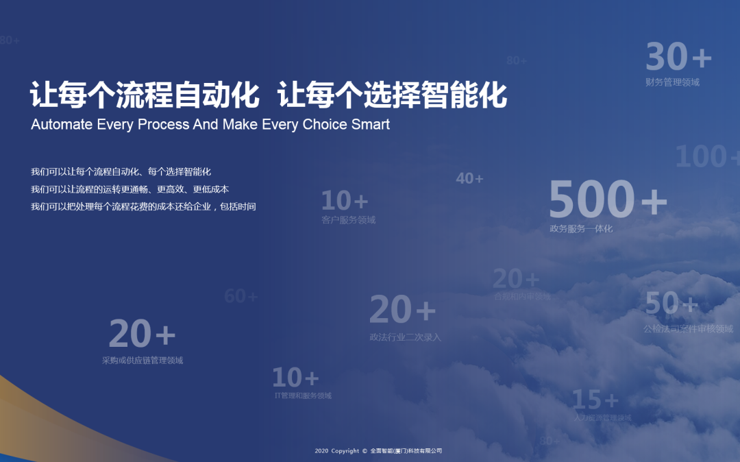 产品方面,我们的RPA产品拥有完全自主知识产权,通过对政府机关、银行保险以及个人助理等多个业务场景深入挖掘,形成一套稳定、高效、智能的自动化体系,同时内置了OCR、NLP、语音识别等多种主流AI技术。此外,还与腾讯建立了战略合作伙伴关系被引入到腾讯云的产品库中。依托腾讯投后企业以及通用产品入围优势,打造出基于腾讯产品的RPA解决方案和腾讯一起服务于广大用户。