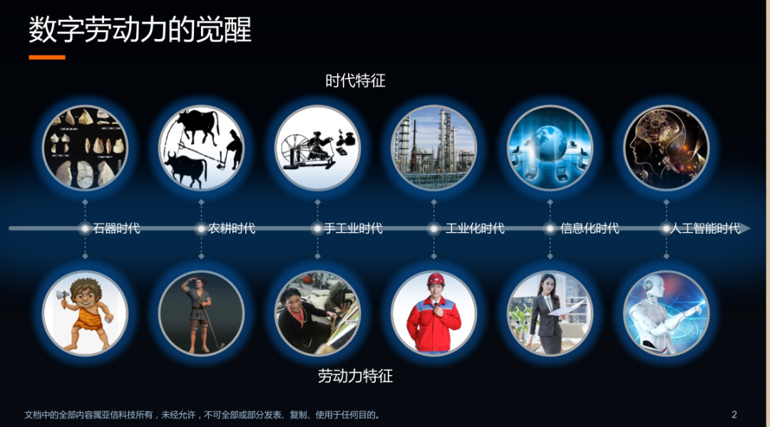 从人类发展历史的视角来看,石器时代首次出现了劳动力的概念,农耕时代农民成为了主角,手工业时代工人成为主角,信息化时代白领成为主角。而到了人工智能时代,由于AI的出现劳动力角色又发生了进化,“智能数字化劳动力”成为了主角。这种技术和职能上的演变是历史发展的产物和必经之路,再加上全球组织处于数字化转型热潮中,智能数字化劳动力的应用是不可逆的大趋势。